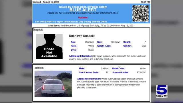 Monitor radio or tv the information provided by the texas department of public safety states authorities are looking for an unknown suspect driving a white cadillac with blue alert texas. 1 officer killed, 4 wounded in standoff with gunman near lubbock.